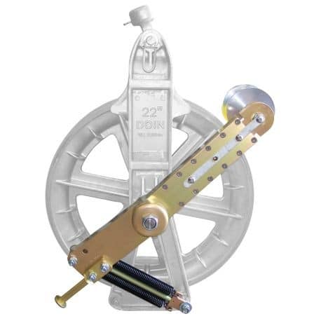 • Uses a heavy-duty spring assembly to keep the roller in constant contact with the conductor